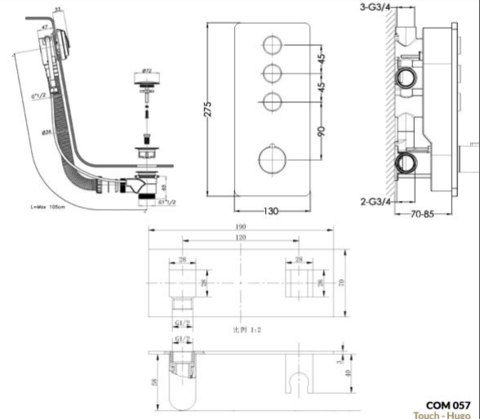 - Overflow Bath Filler with click clack waste, 60cm, LP 0.2