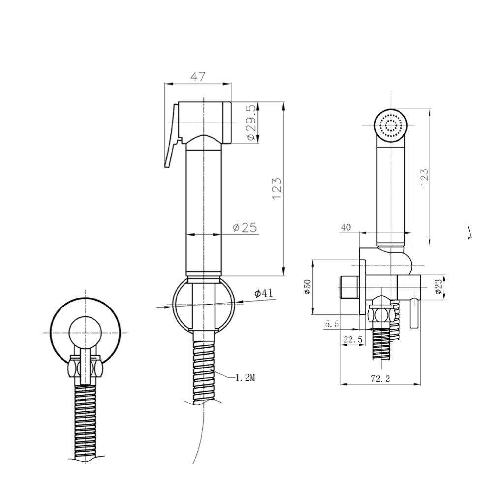 • Wall Mounted douche with on/off lever