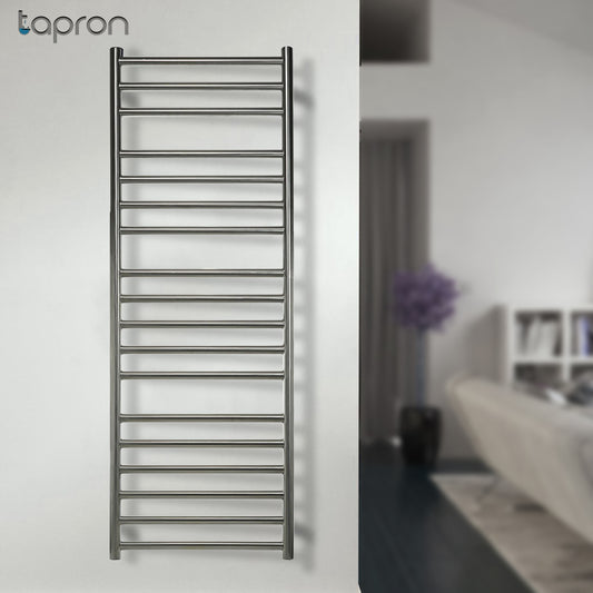 Efficiency and beauty come together in this stunning brushed stainless steel towel radiator. It is made of high-quality steel, which resists rust and corrosion while giving excellent results with a heat output of 1374 BTU making it extremely heat-conductive.
