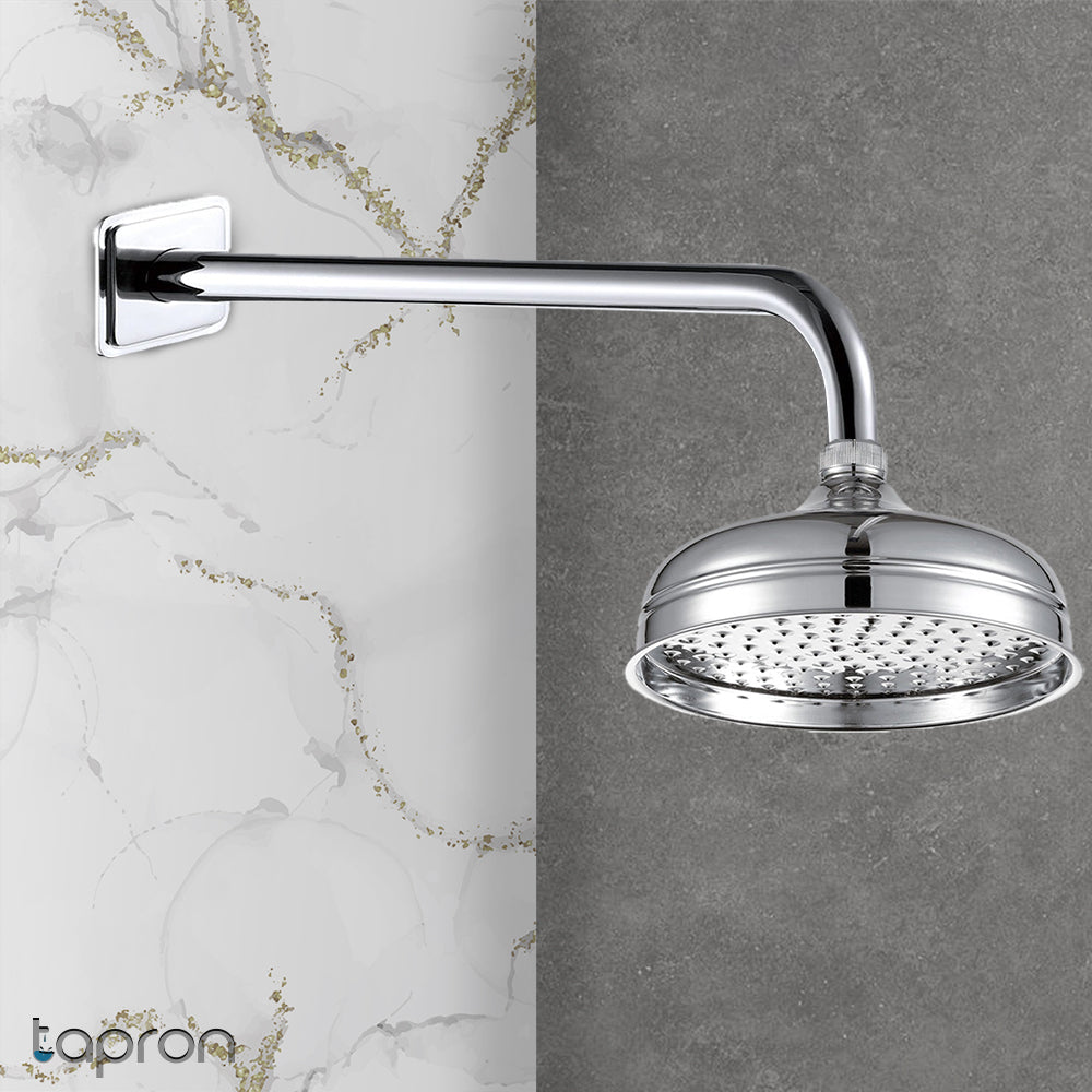 Bring classic charm and refreshing comfort to your bathroom with the traditional shower kit, crafted to suit heritage-inspired interiors with elegance and ease. Made from strong brass with a polished surface, the design embraces authentic detailing while maintaining durability for everyday use. The graceful arm extends 400mm, positioning the spray perfectly for a comfortable, balanced overhead rinse.